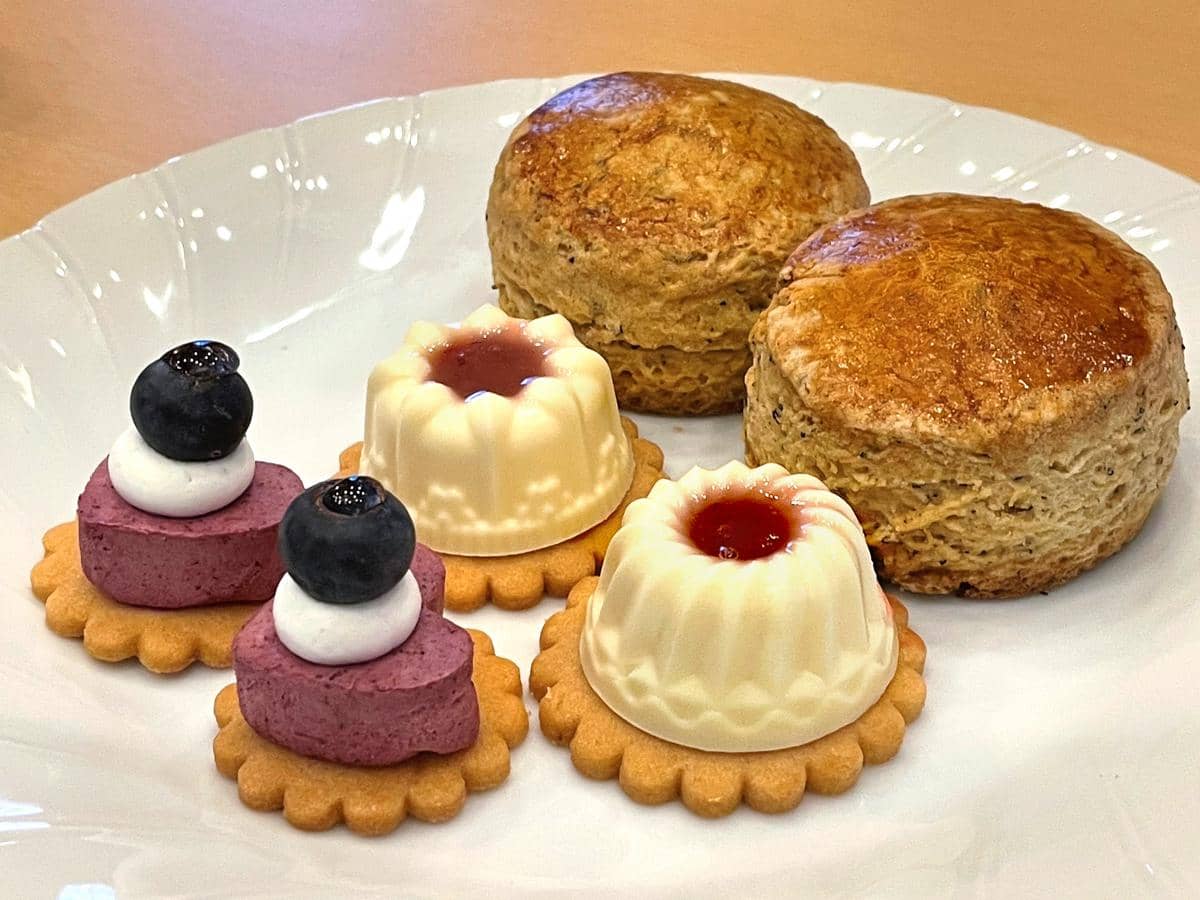 期間限定のスペシャルなケーキと焼き菓子。下段のプレートもこの期間限定です。