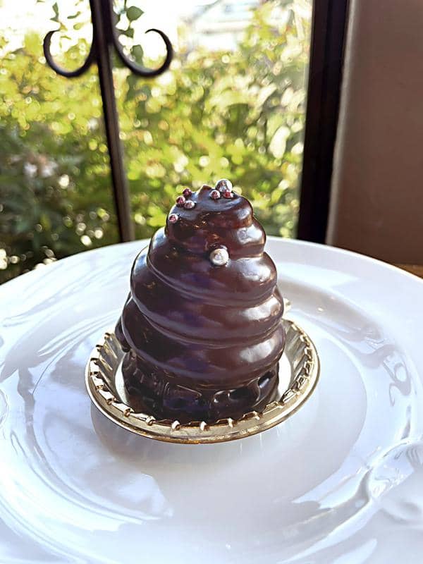 オリジナルのチョコレートガナッシュを流して仕上げたパティシエおすすめのチョコレートケーキです。