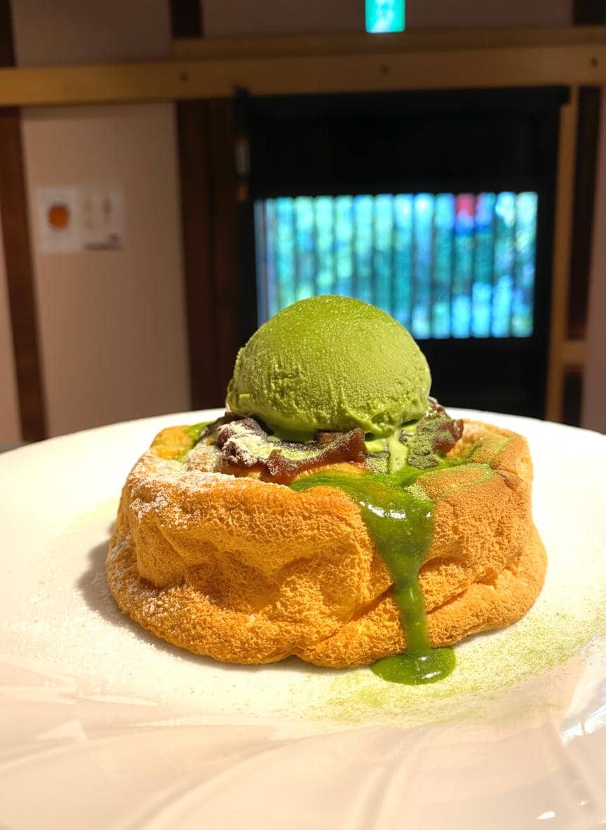 〈黒蜜きな粉のパンケーキ〉 〈抹茶小倉あんのパンケーキ〉