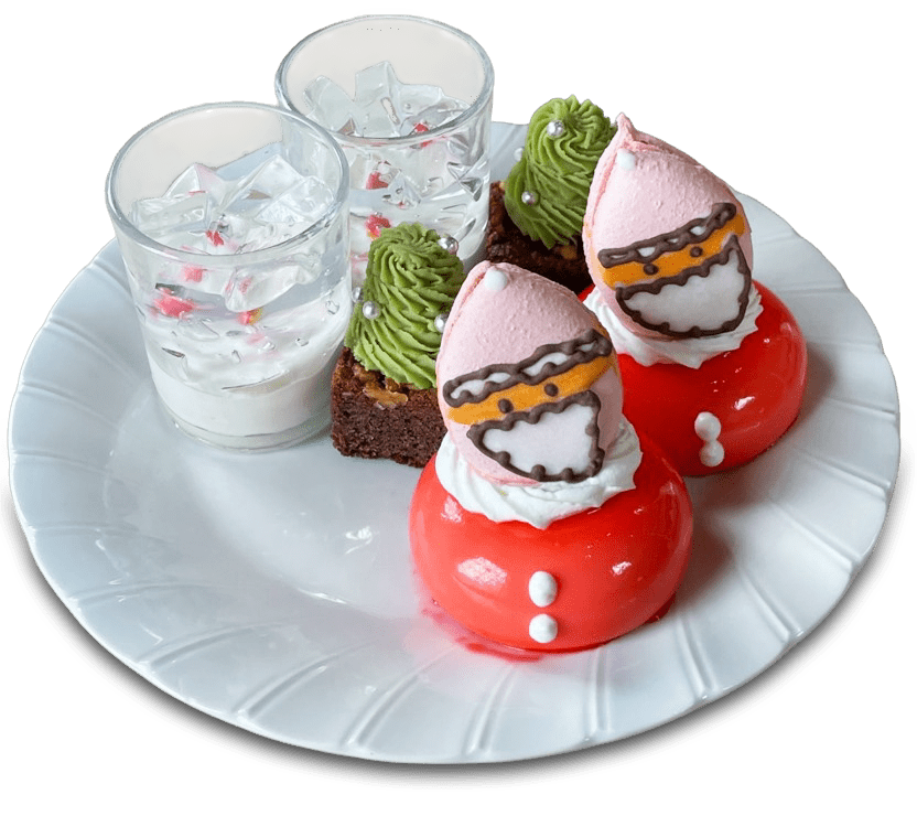 「サンタが迷い込んだファンタジーなクリスマスの世界」。 一つ一つがこだわりの可愛らしいスイーツたち 見た瞬間に心ときめくスイーツが並びます。