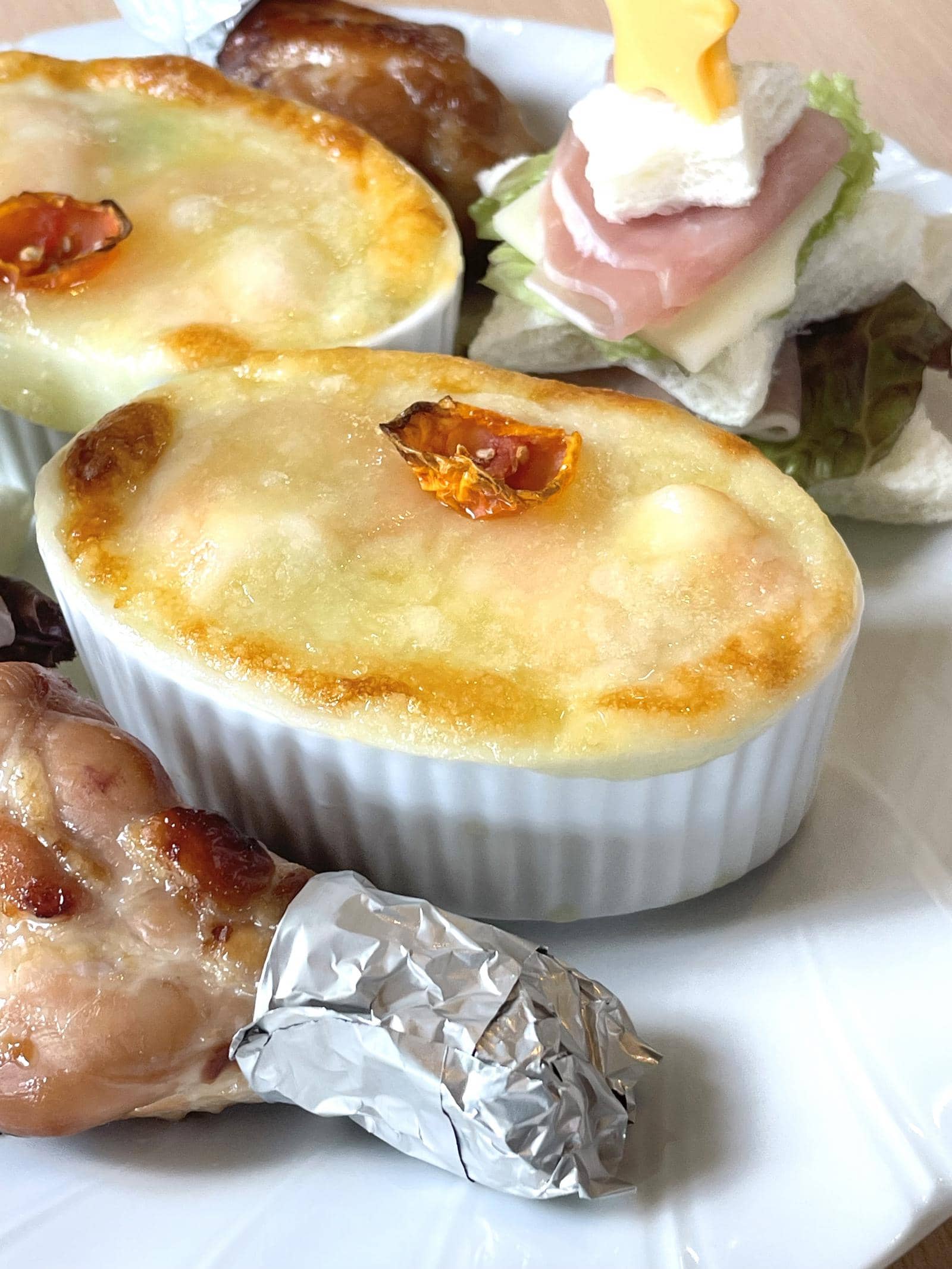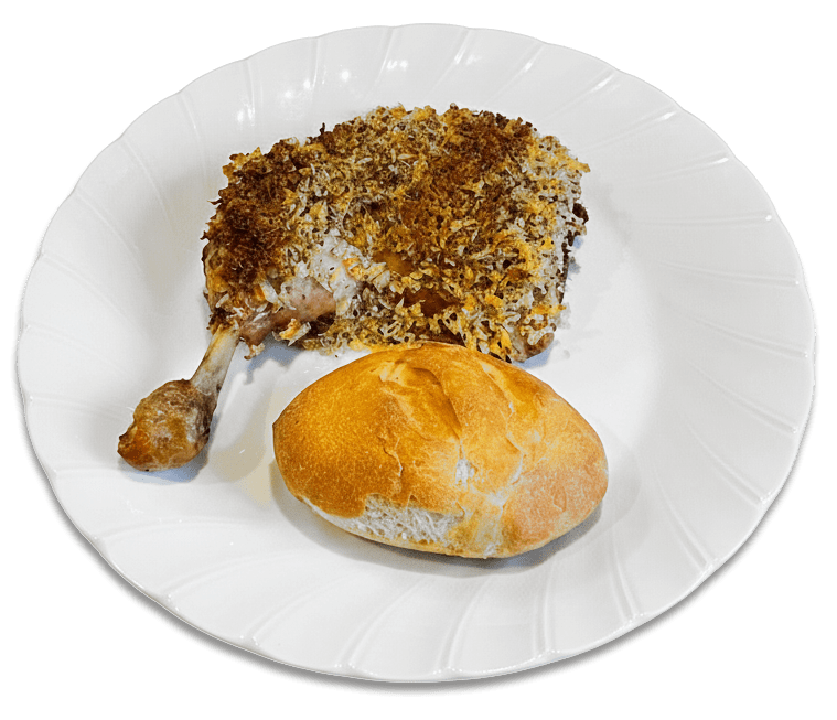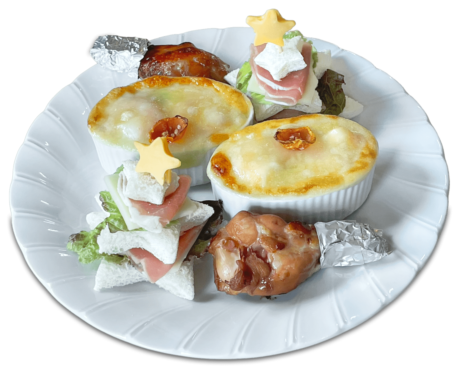 鶏もも肉をじっくりコンフィに仕上げたあと、 ハーブと香ばしいパン粉をまぶしてオーブンで焼き上げました。 外はカリッと、中はしっとりジューシー。 パンとの相性も抜群な、ちょっと贅沢なクリスマスチキン。
