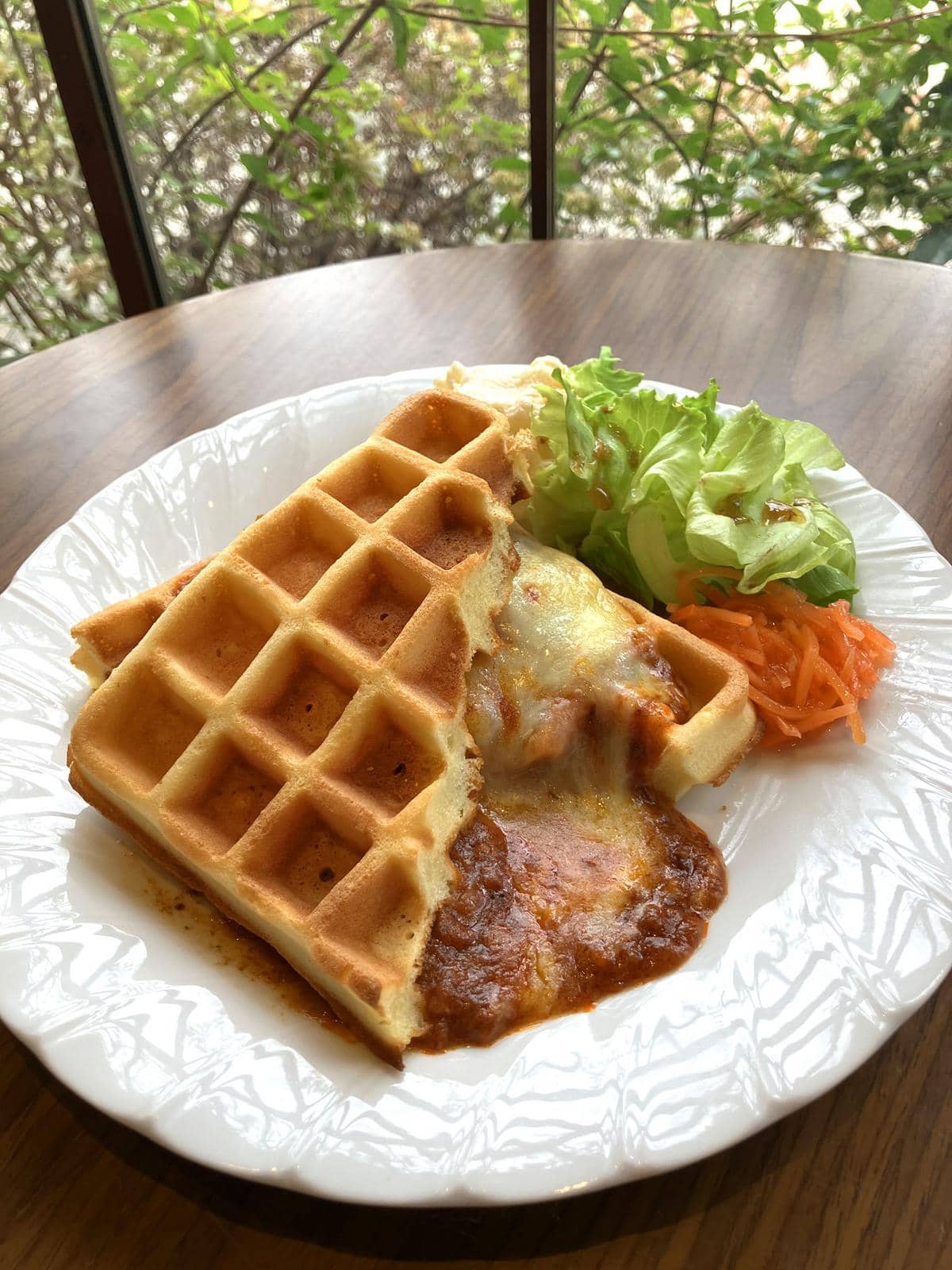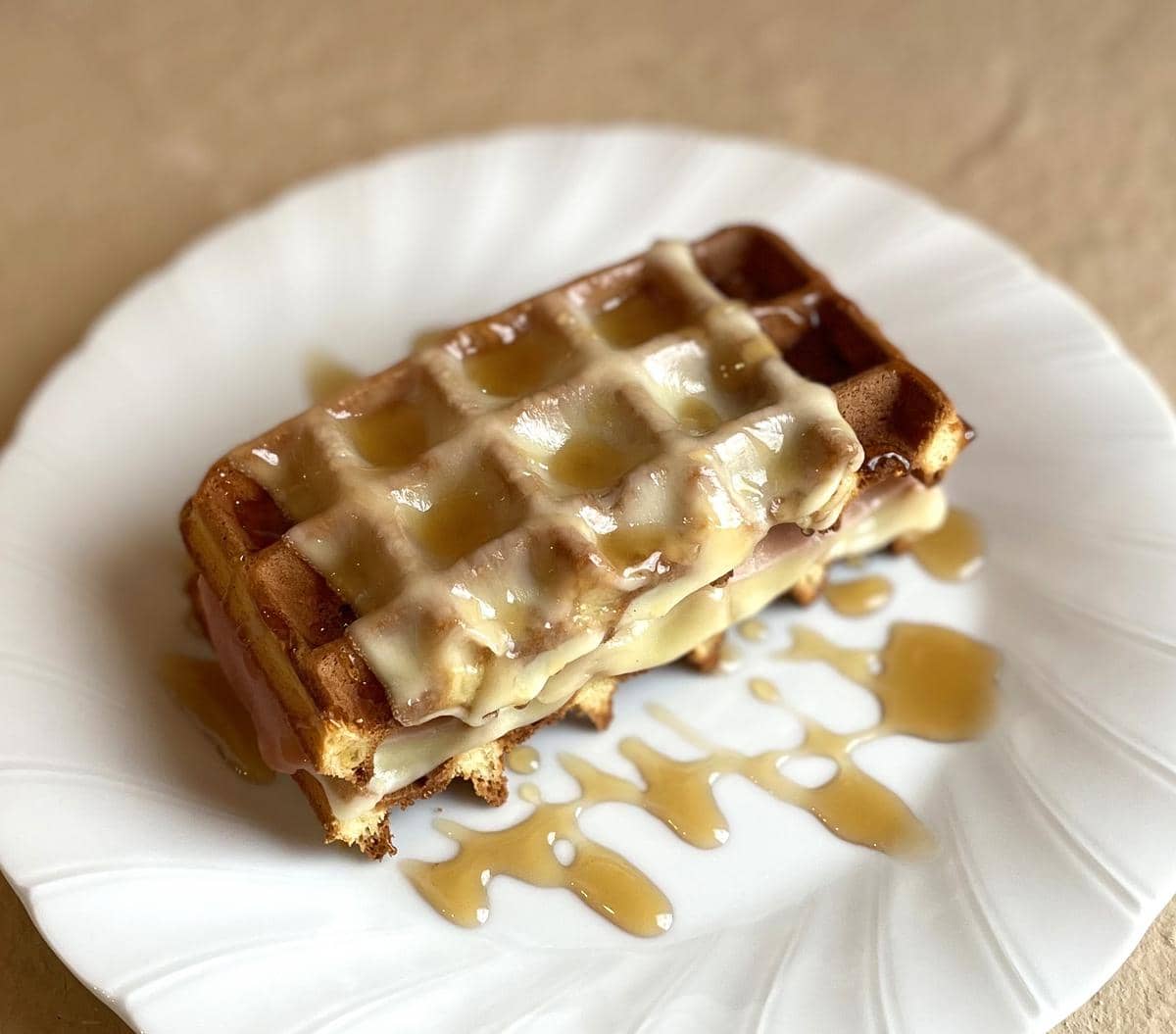 ワッフルサンド ハムとチーズ ~メルティングチーズ&メープルソースがけ~