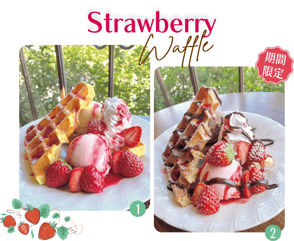 1.いちごのワッフル / 2.いちごチョコワッフル