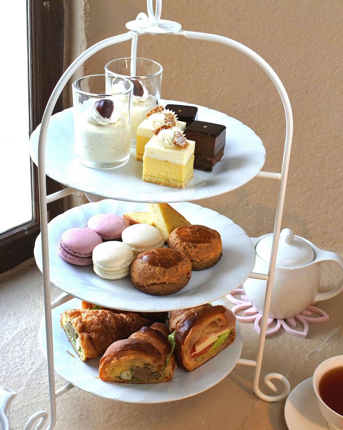 1段目と2段目はパティシエ自慢のプチガトー、グラスデザート、焼き菓子のスイーツプレート。 3段目がルカフェで人気のクロワッサンサンドで、ディナーとしてのボリュームも十分です。 ドリンクはコーヒー、紅茶、ハーブティー、ジュースからお選びいただけます。