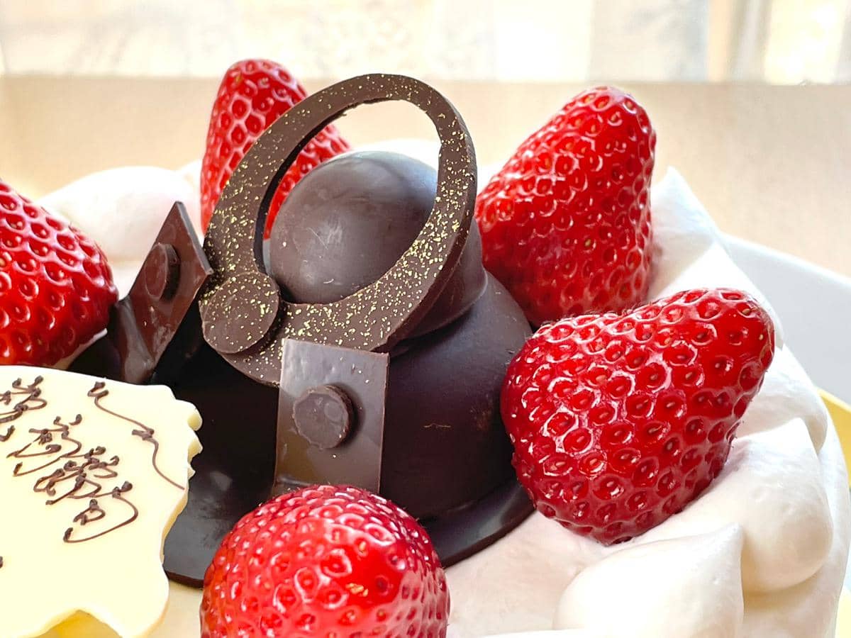 ふわふわのスポンジにこだわりの生クリームで仕上げました。 口に入れた瞬間にスポンジと生クリームが一つになって、 まるで溶けてしまうような食感をお楽しみください。 パティシエがひとつひとつ心を込め、いちごのチョコレートで バラの絵画のようにアートチックに仕上げました。