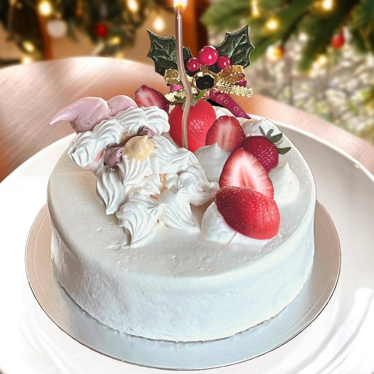 メレンゲのサンタと共に、シャンパンゴールドのロウソクに火をともして聖夜を 一緒に過ごすのは、家族、お友達、それとも大切な、、、 ※シャンパンゴールドのロウソク1本がついています
