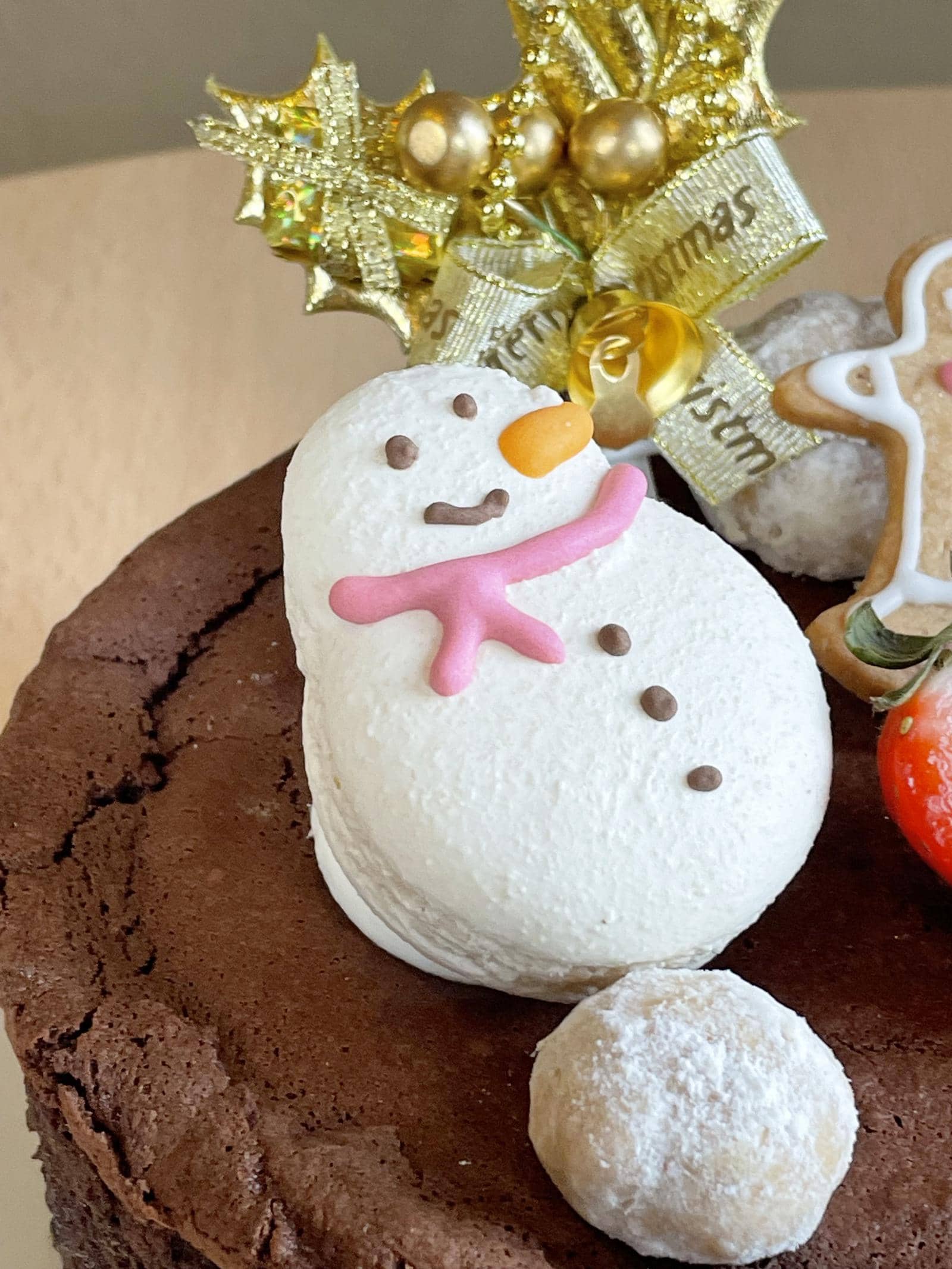 Chocolat classique クラッシックショコラ 毎年人気のガトーショコラのクリスマスケーキ。パティシエ自慢の濃厚なチョコレートがお口の中でとろけます。深みのあるカカオ感を大切にしっとり濃厚に 焼き上げました。雪だるまのマカロンと ジンジャークッキーを添え、“雪合戦の玉”を 散りばめた雪景色のショコラケーキです。 クラッシックショコラ 1杯無料ドリンクチケット付き 早割り価格 通常価格 12cm(4号): ¥3,037 ¥3,380 (税込¥3,280) (税込¥3,650) 15cm(5号): ¥4,056 ¥4,491 (税込¥4,380) (税込¥4,850) ご予約はこちらから